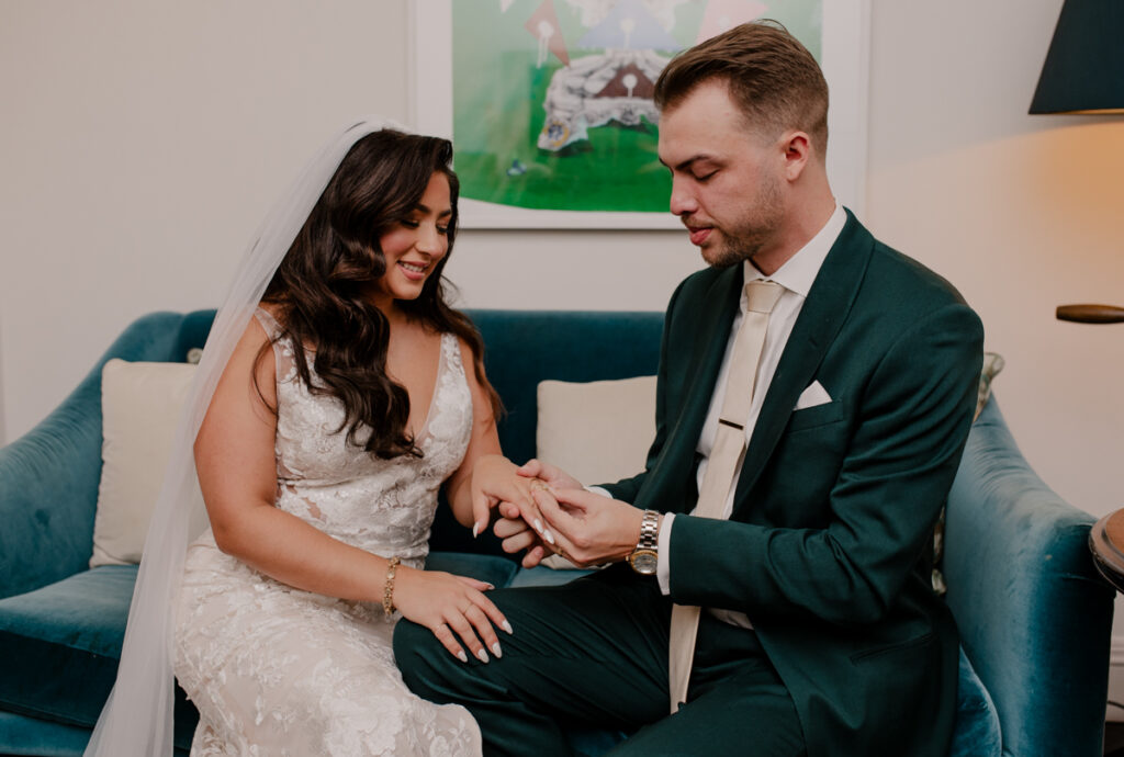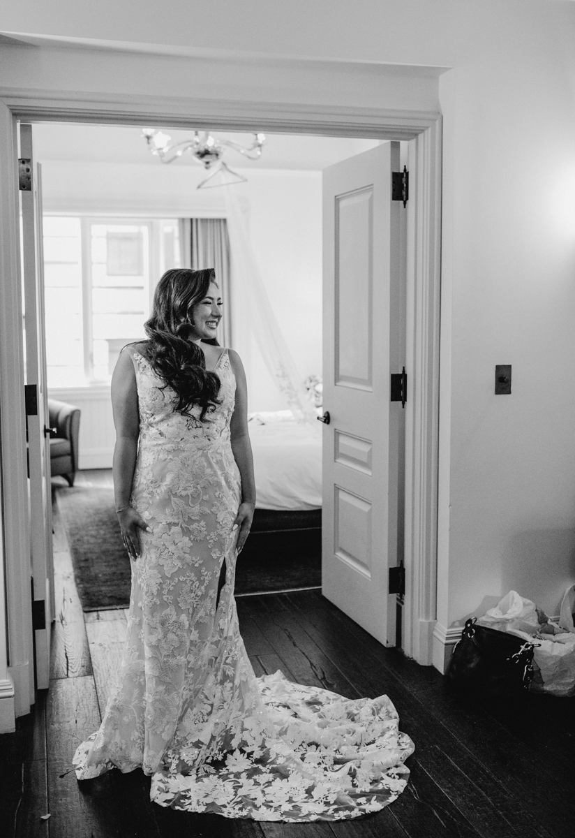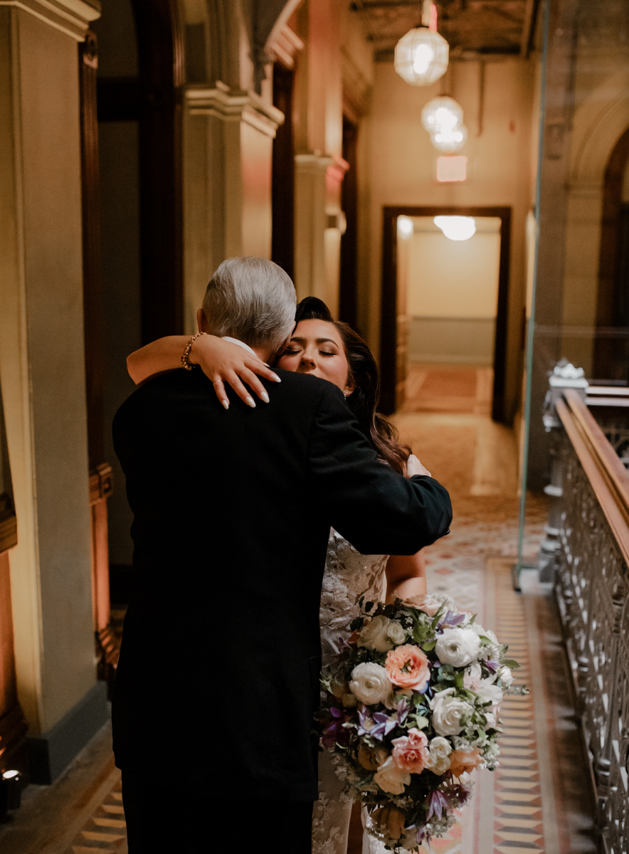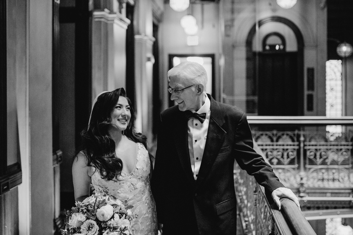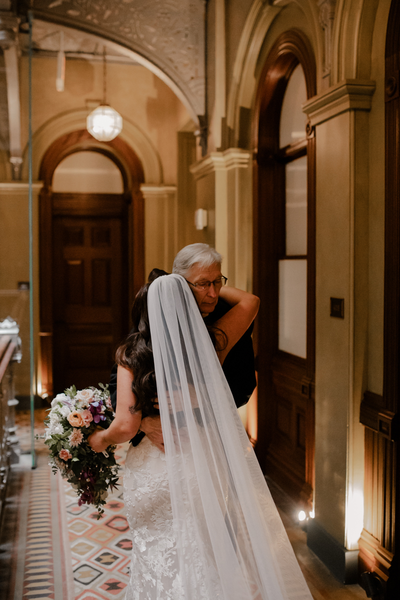 As the families went down to await the couple in the lobby, it was time for Fiona and Luke to share their first look with one another. A beautiful and intimate moment, framed by the archways and architecture of the Beekman’s atrium, Fiona and Luke took in all the emotions of their first look before returning to their room for a private vow exchange.