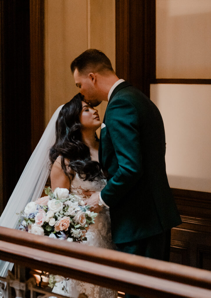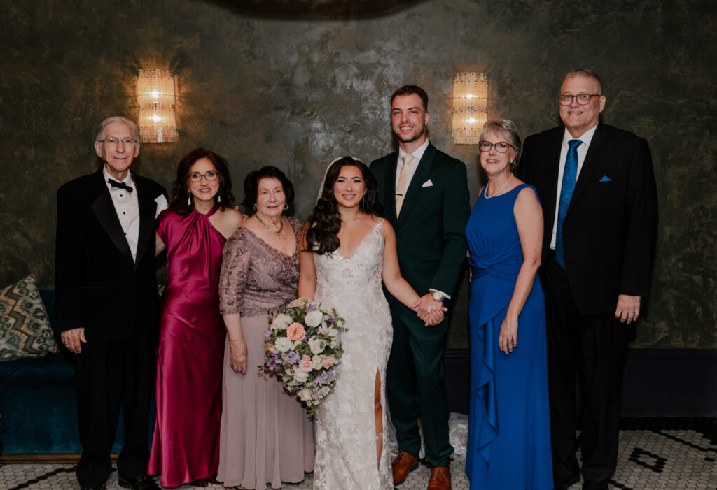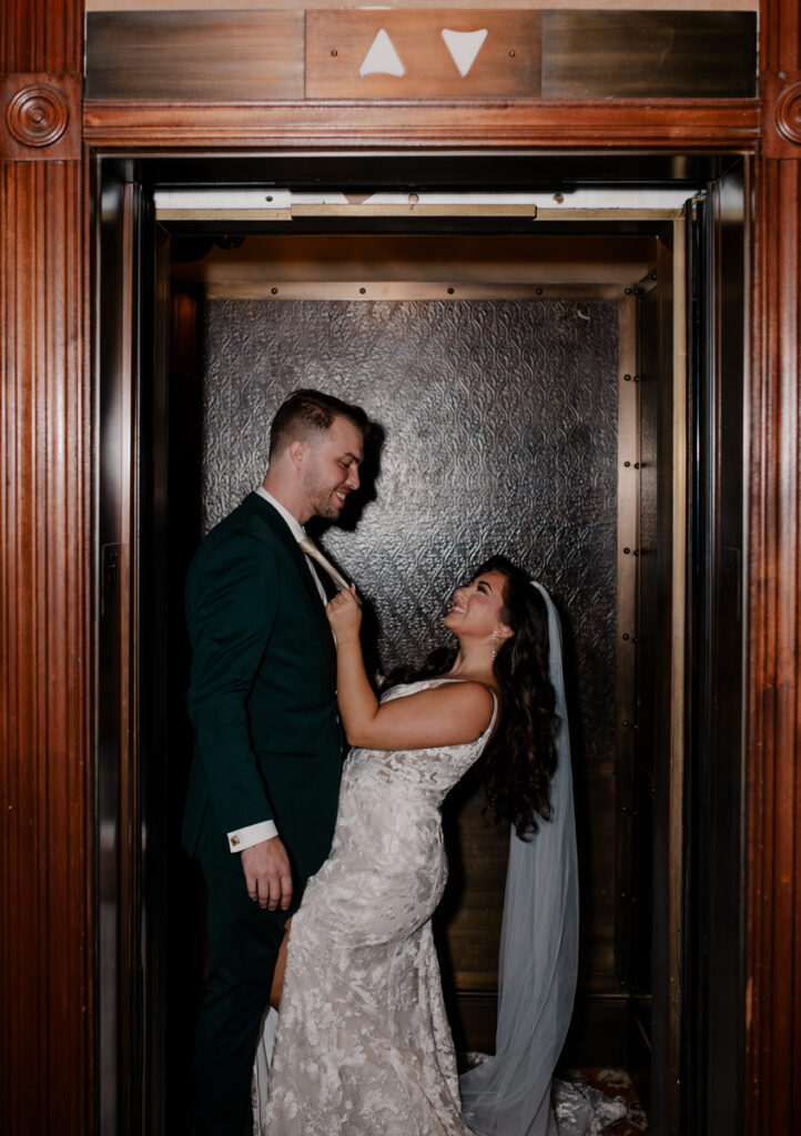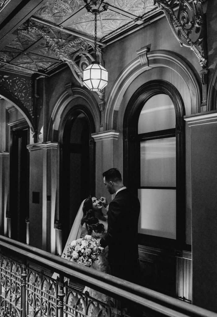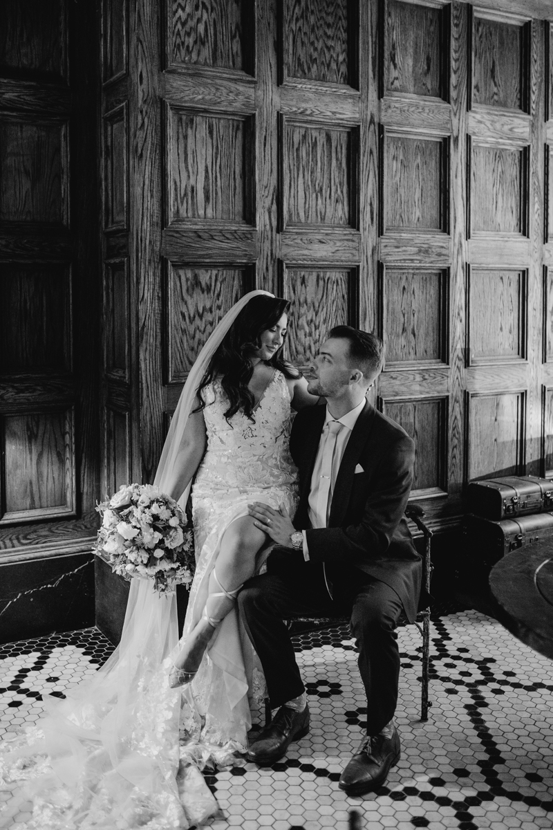 Afterwards the three of us made our way down to the hotel lobby, where the newlyweds were anxiously awaited by their loved ones. The lobby of the Beekman Hotel, with its unique furnishings and wall design, added texture and contrast to their family and couples portraits. Pairing the romance of the moment with the hotel’s elegant architecture, we played with flirty and elegant prompts that captured Fiona and Luke’s love for each other.