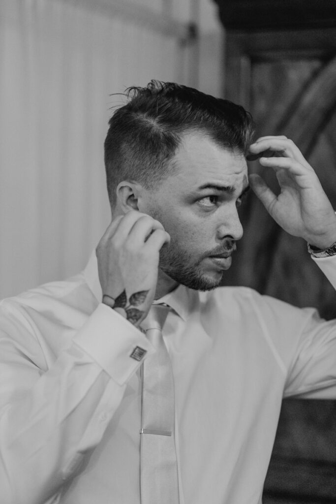 They began their morning getting dressed in separate hotel rooms, just down the hall from one another, joined only by their parents and grandmother. After first looks with all the women, Fiona shared an emotional moment with her father.